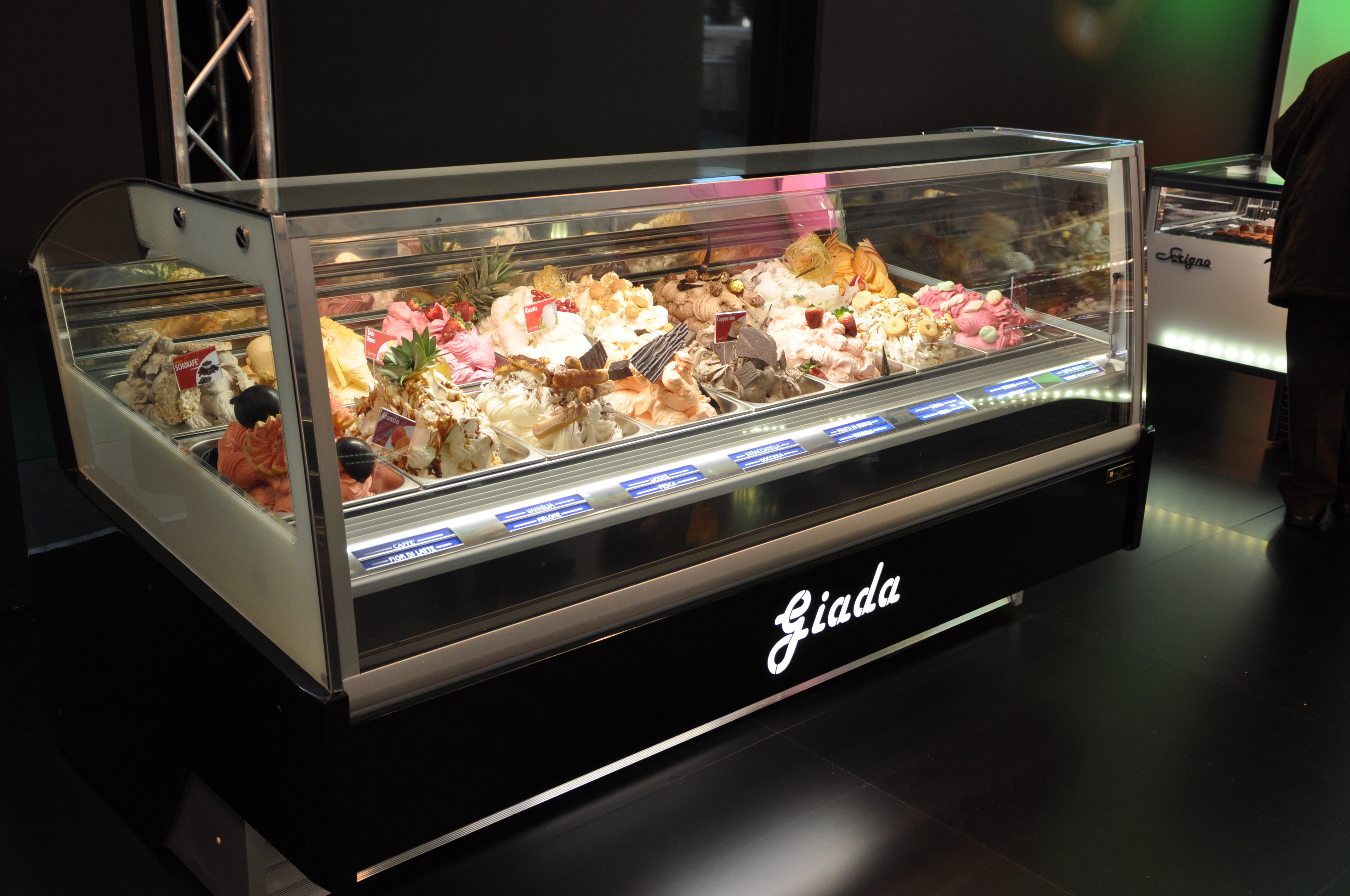 - Povrch výstavnej plochy vám umožňuje zobrazovať vašu zmrzlinu nad okrajom nádoby (vysoká zmrzlina) vďaka špeciálnej vaničkovej forme s veľkými výstupmi vzduchu (3 deflektory, z ktorých 1 nastaviteľný) a dostatkom spätných plôch.